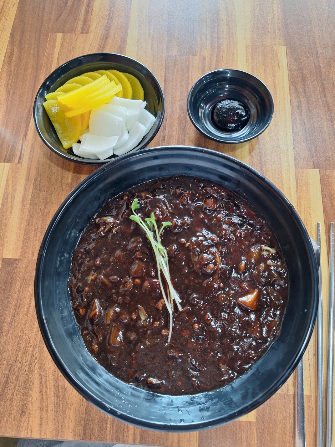 푸짐한 짜장면이 나왔습니다.