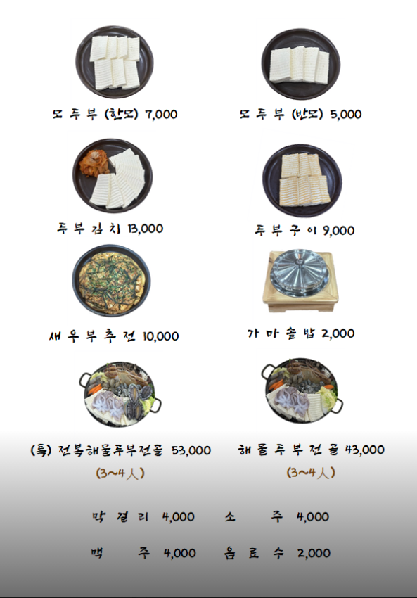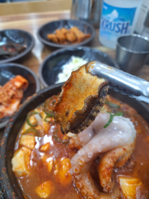 여러 메뉴가 있었으나, 나는 전복과 낙지가 들어 있는 순두부를 시켰다. 매운맛 조절도 되는 것 같았다.(보통맛 주세요~ 메워요ㅜㅜ)