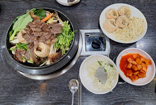 만두전골 2인분이 기본 주문이다. 해물파튀, 도토리묵등 다른 메뉴도 있지만, 둘이 가면 기본만 먹어도 배가 부르다..ㅎㅎ